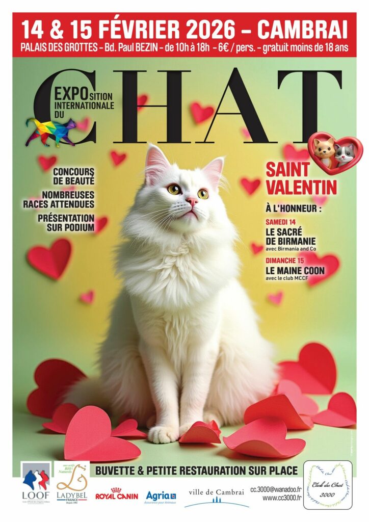 Ce week-end, nous aurons le plaisir de participer à l’exposition de Cambrai organisée par le Club du Chat 3000 en partenariat avec le Maine Coon Club de France pour la spéciale du dimanche.